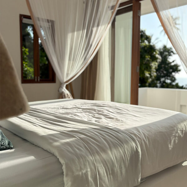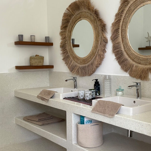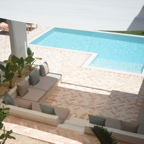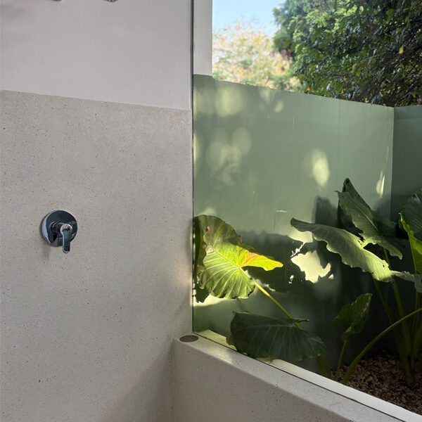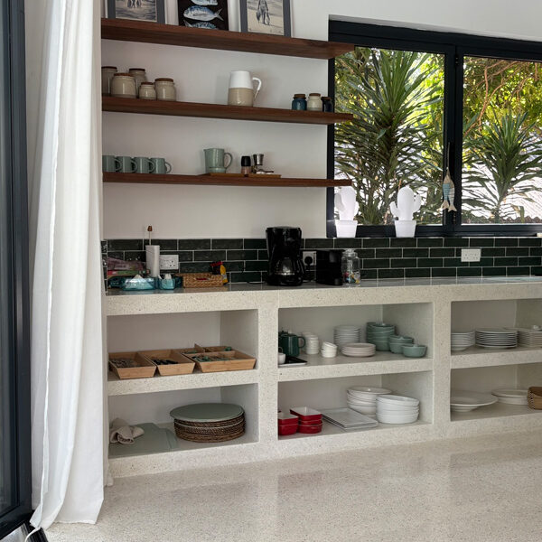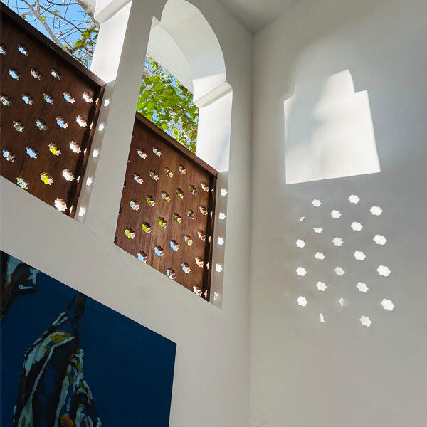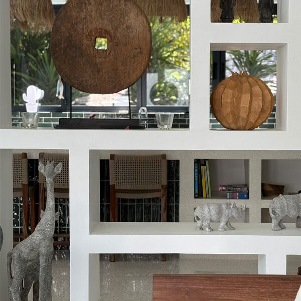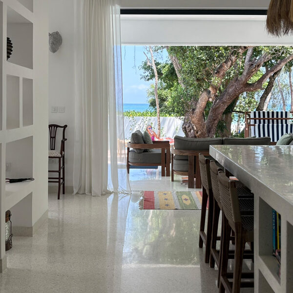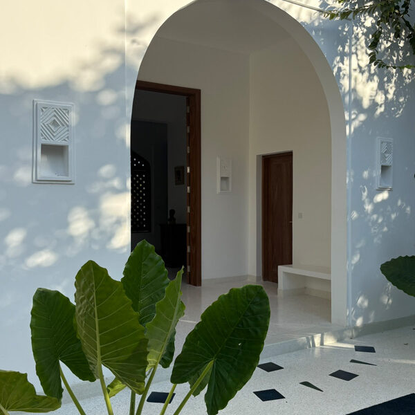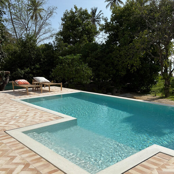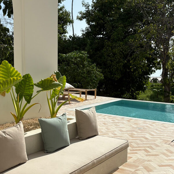 Located off the beaten track, along Galu Beach underneath the shade of African Fig and Indian Almond trees lies a gem of a plot. The project brief was to develop a 4-bedroom family holiday home with a swimming pool and 2-bedroom guest cottage. The plot itself is dotted with beautiful mature trees and spills out onto the beach. Careful not to interfere with the trees, the cottage is nestled on the lower half of the plot closest to the beach. The main house is elevated on a natural coral ridge looking over the cottage with views towards the ocean. The house was designed with a courtyard as its centre point off which all rooms gravitate. High floor to ceiling heights make for an impressive experience entering the house, with arch-framed views of the infinity pool, garden and ocean beyond.